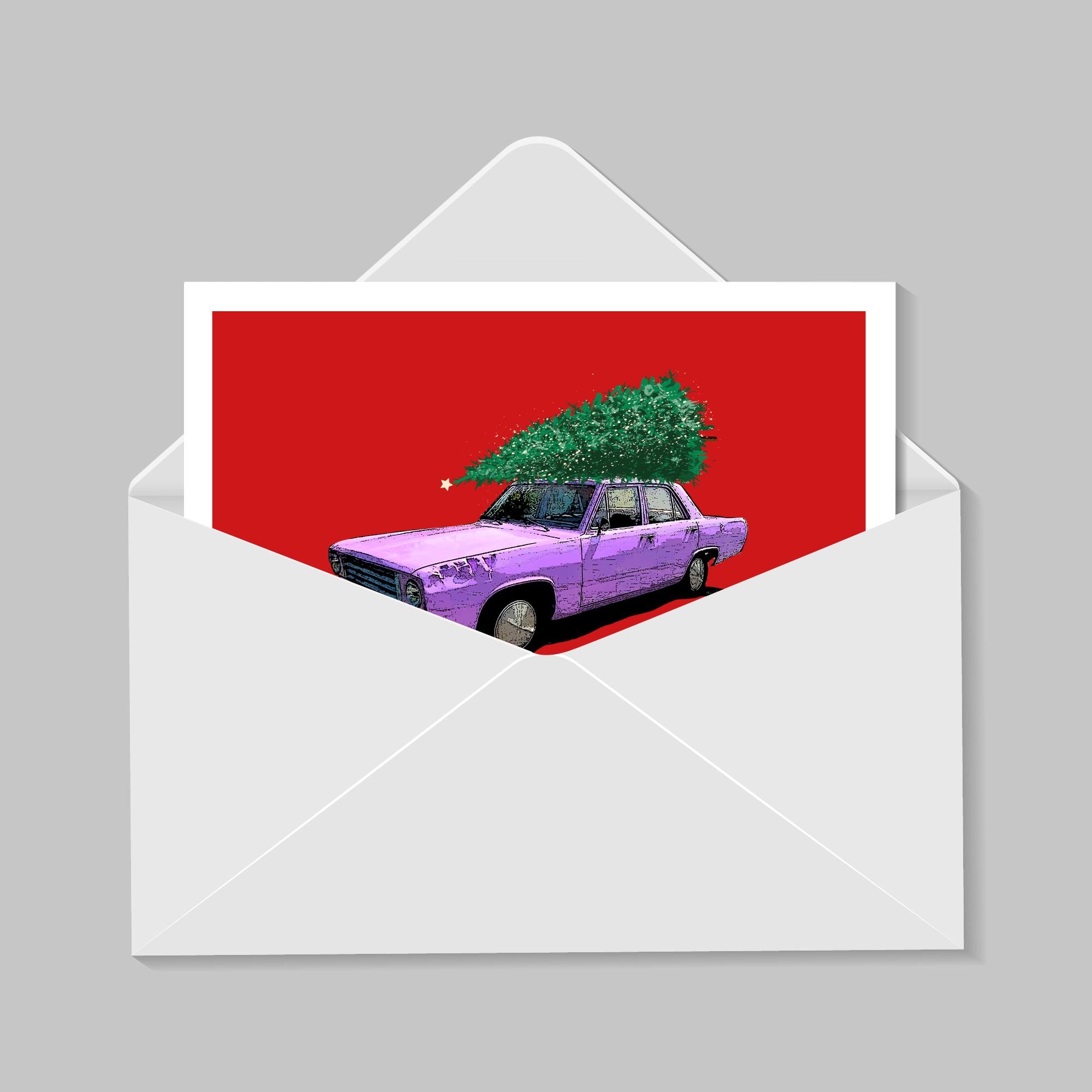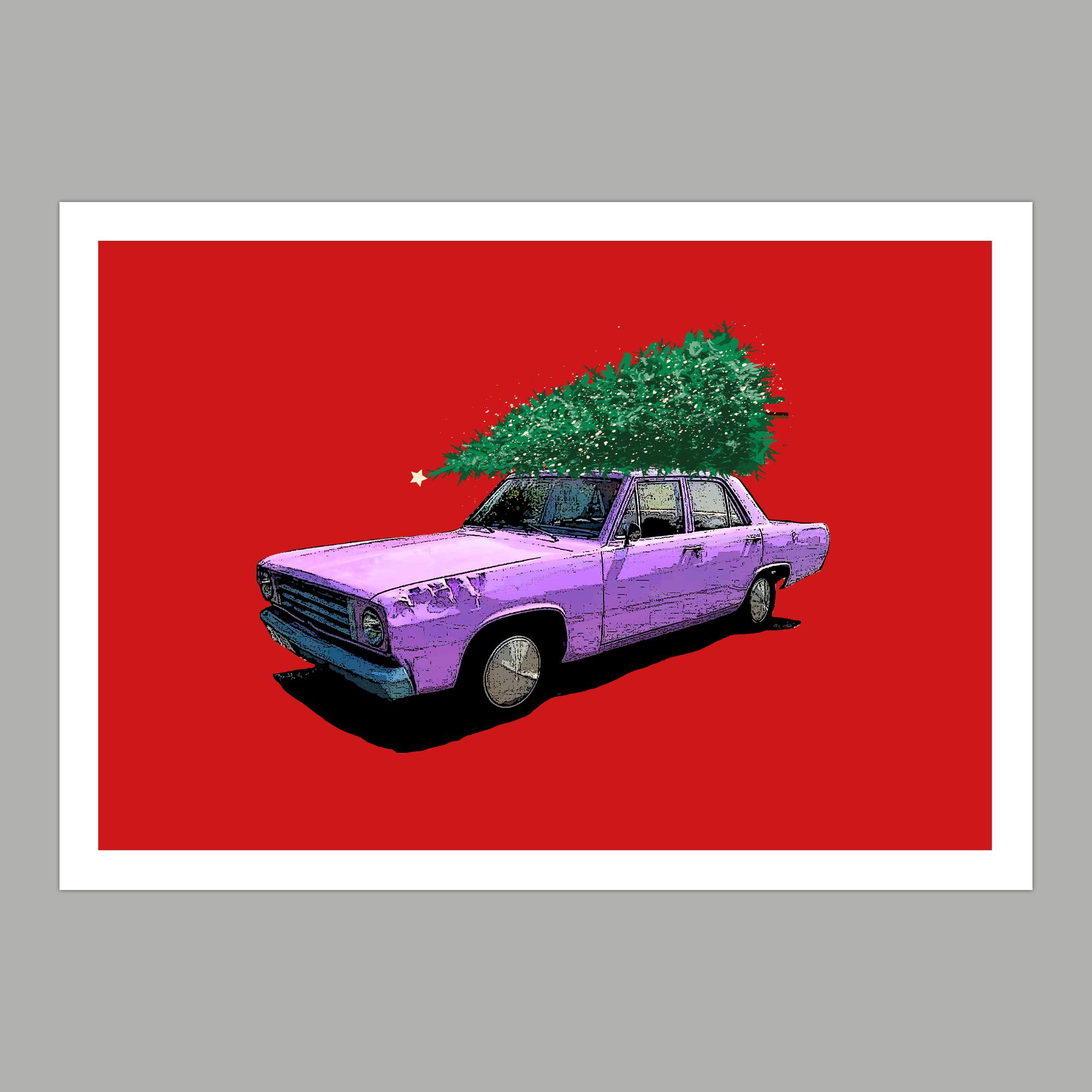 Christmas-themed illustration of the iconic Junkerolla in The Simpsons.