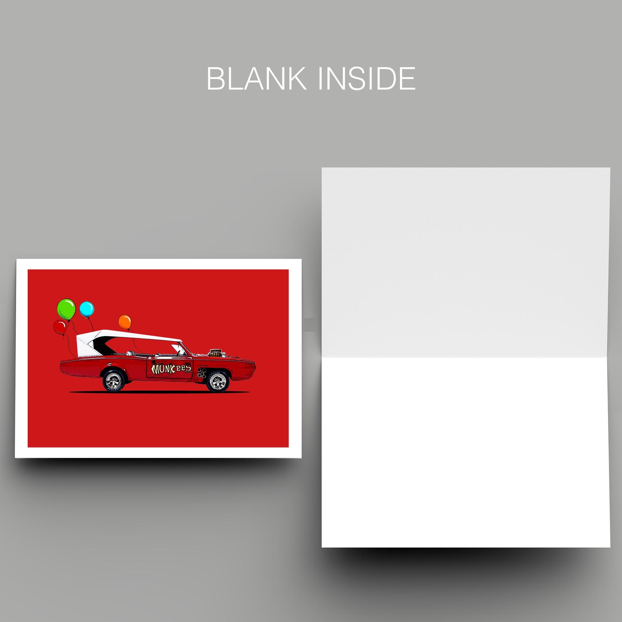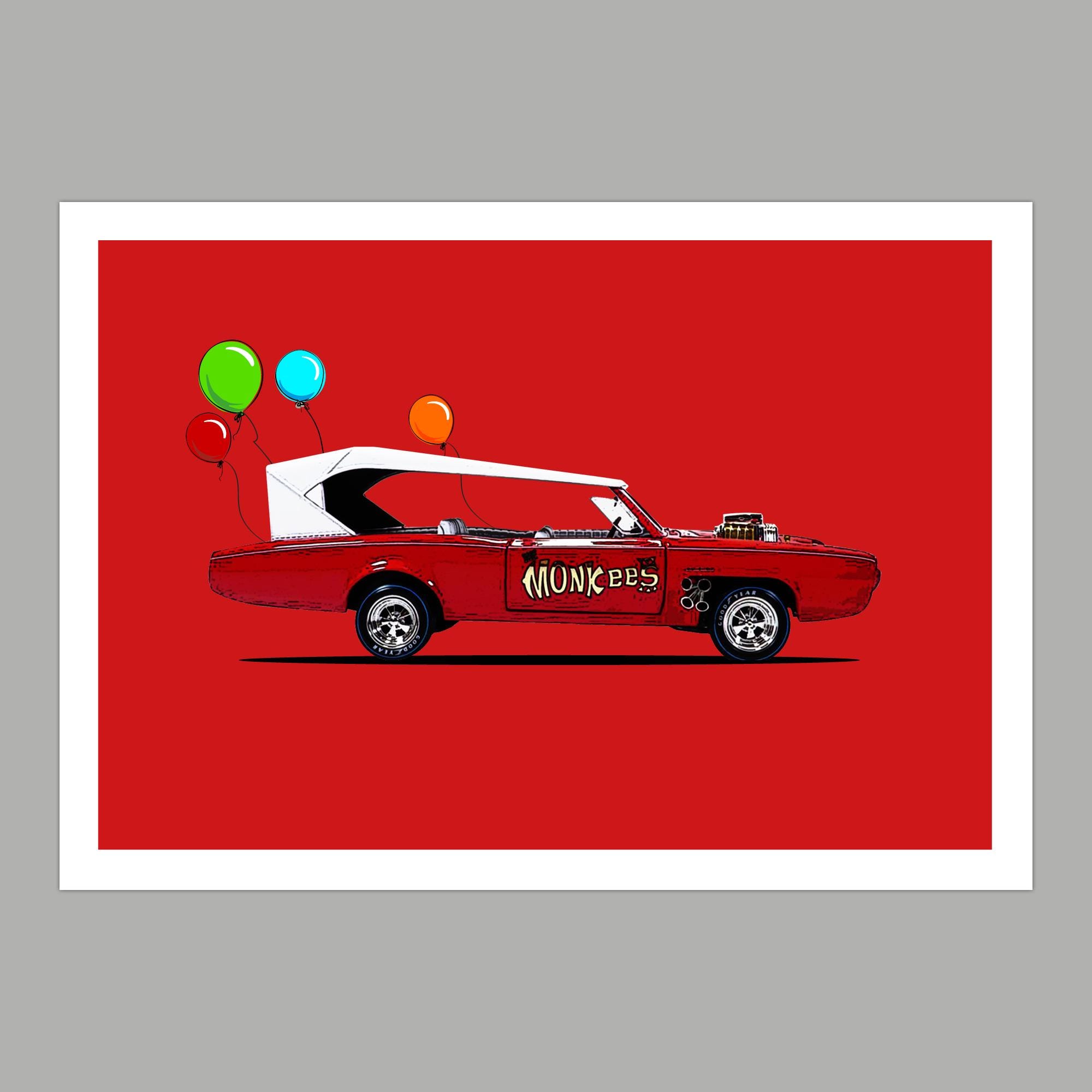 Birthday-themed illustration of the iconic Monkees Monkeemobile.